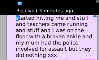 My best friend who is a sister to me and who i'm a sister too who lives about 5 hours away in wales is being bullied and i don't know how to help her mother wont let her move schools and the police won't do anything. The black boxes on the screenshots attached are just to protect our identity and any identifying information.She knows about this thread and she knows how i've edited the screenmunches,with her permission. I wont give any more identifying info,
